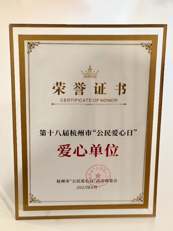 赠人玫瑰,手留余香。华体会(中国)茶乐公司也因此被杭州市“公民爱心日”活动组委会授予爱心单位荣誉证书。未来,华体会(中国)也将在公益之路上继续努力,初心不改,步履不停。